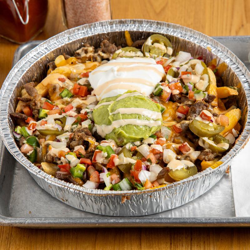 Carne asada, pico de gallo, guacamole, french fries, chipotle dressing